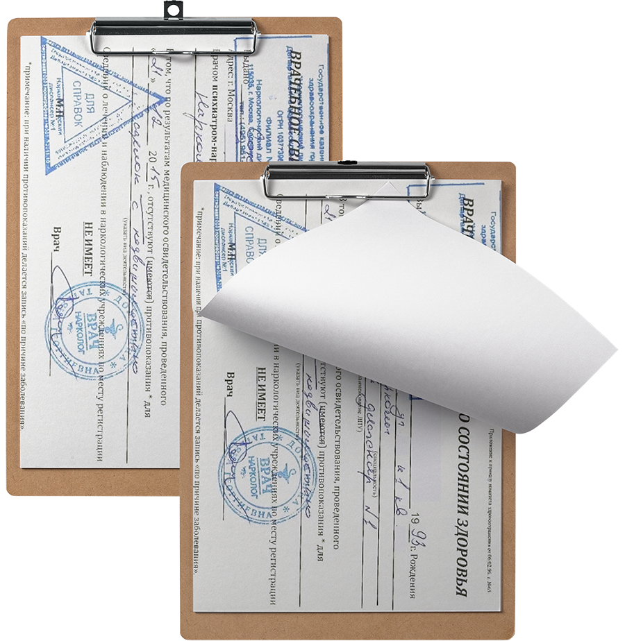 В нашем медицинском центре можно купить справки из психоневрологического диспансера (ПНД) или наркологического диспансера (НД), а также водительскую справку для получения прав в гаи формы 003 ву. Заказ можно сделать онлайн или по телефону. Со своей стороны мы гарантируем: